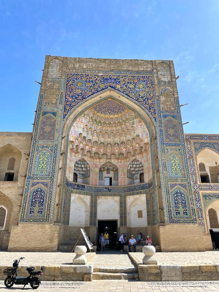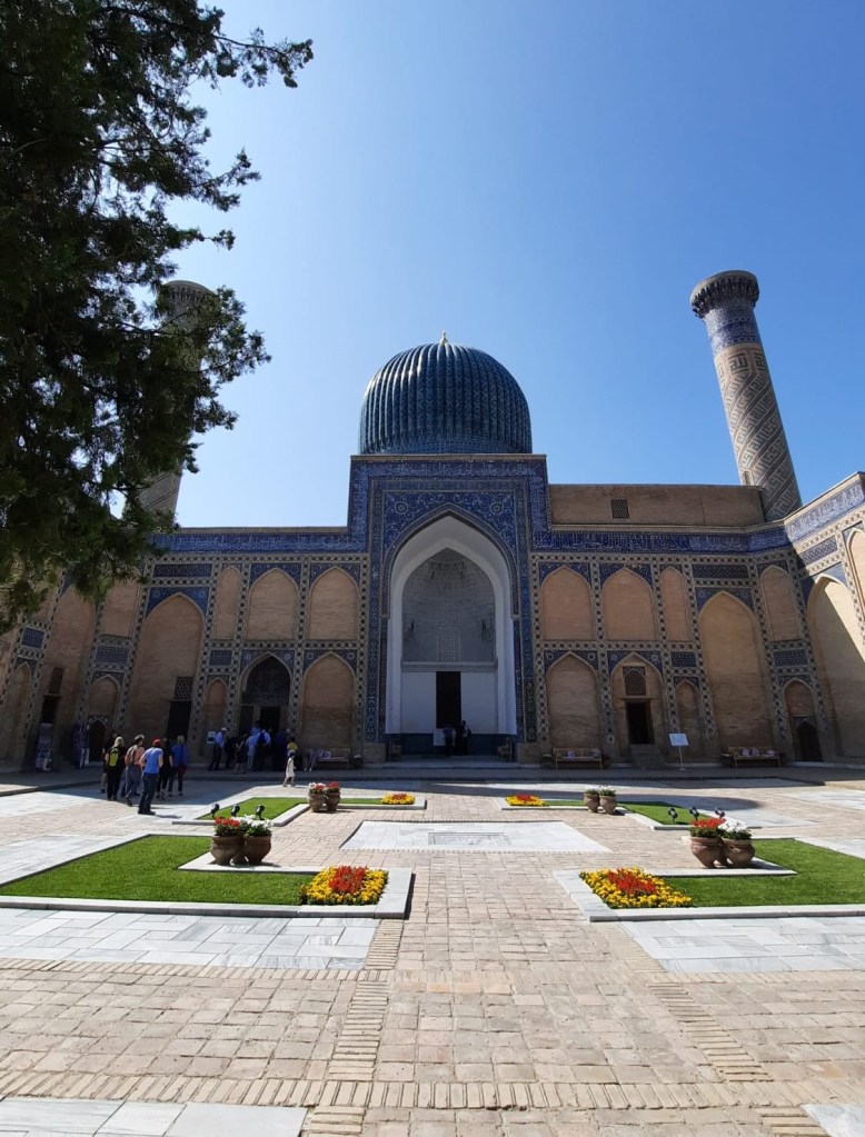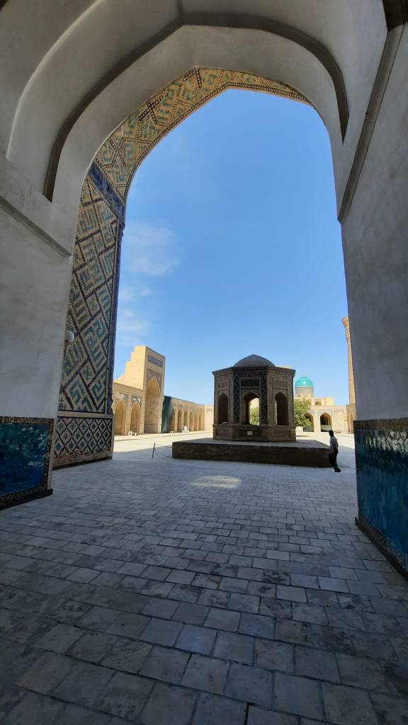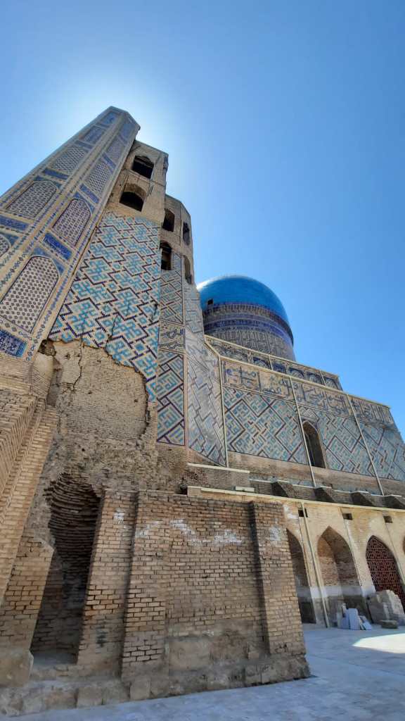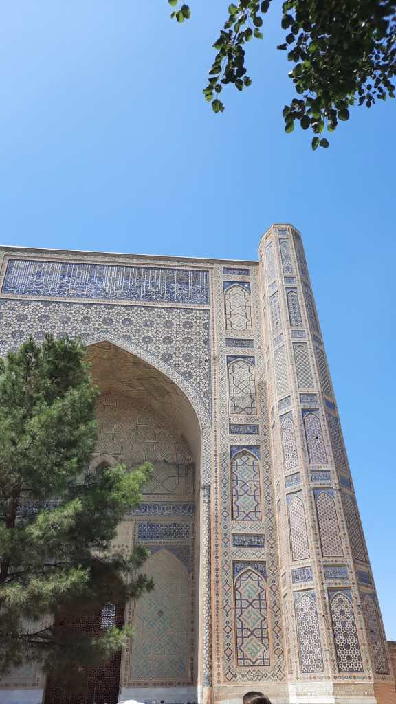 Sa rénovation débuta en 1974, c’est aujourd’hui une magnifique mosquée, sans doute à la hauteur du souhait d’Amir Timur qui voulait la plus grande mosquée de Samarcande. Elle porte le nom de sa femme préférée Bibi-Khanym. Plusieurs légendes concernent sa construction notamment une histoire d’architecte amoureux…