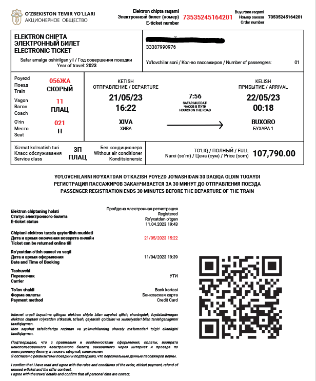 Avant de prendre les billets je ne connaissais pas Ouzbek Airways les avis pourtant récents ne donnaient vraiment pas envie de voyager avec et pourtant nous n’avons eu aucune mauvaise surprise : les avions sont propres, couvertures si besoin sachant que le vol ne dure que 6h, plateaux repas copieux et surtout avion à l’heure et pas de perte de bagage, que demander de plus ! Rien de mieux qu’expérimenter et se faire son propre avis.