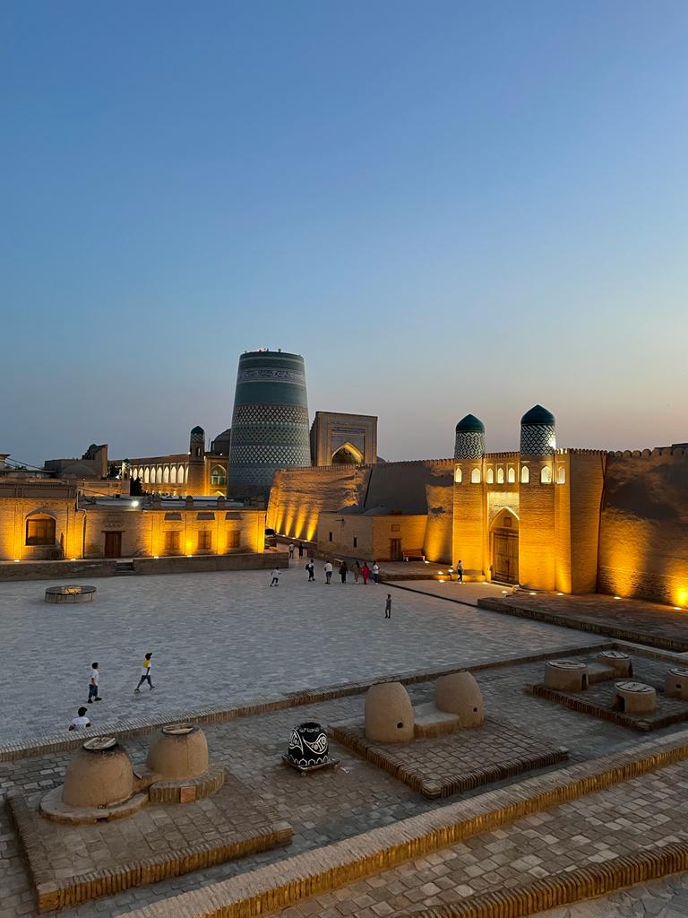 Comme beaucoup de voyageurs, nous avons eu un coup de coeur pour Khiva et malgré la distance il me semble dommage d’écarter cette ville du programme. Le centre historique est certes très touristique mais reste agréable, cela n’a rien à voir avec certains sites surchargés que l’on peut visiter en Europe (Venise, Santorin…). Le calme généré par l’absence de voiture nous permet de déambuler tranquillement dans les ruelles. A la tombée du jour la plupart des boutiques ferment et l’ambiance est encore plus cosy avec des enfants qui jouent sur ces magnifiques places éclairées. Cette ville est idéale pour débuter le voyage, tout est tellement impressionnant que l’on pourrait se croire dans un décor de film.