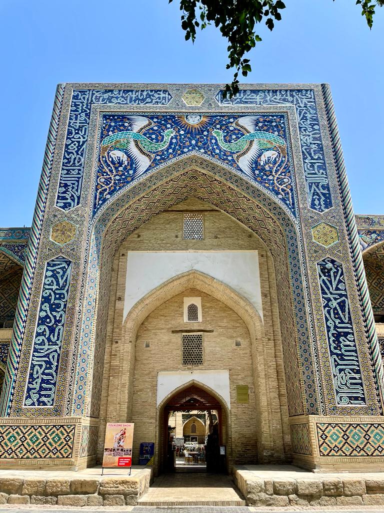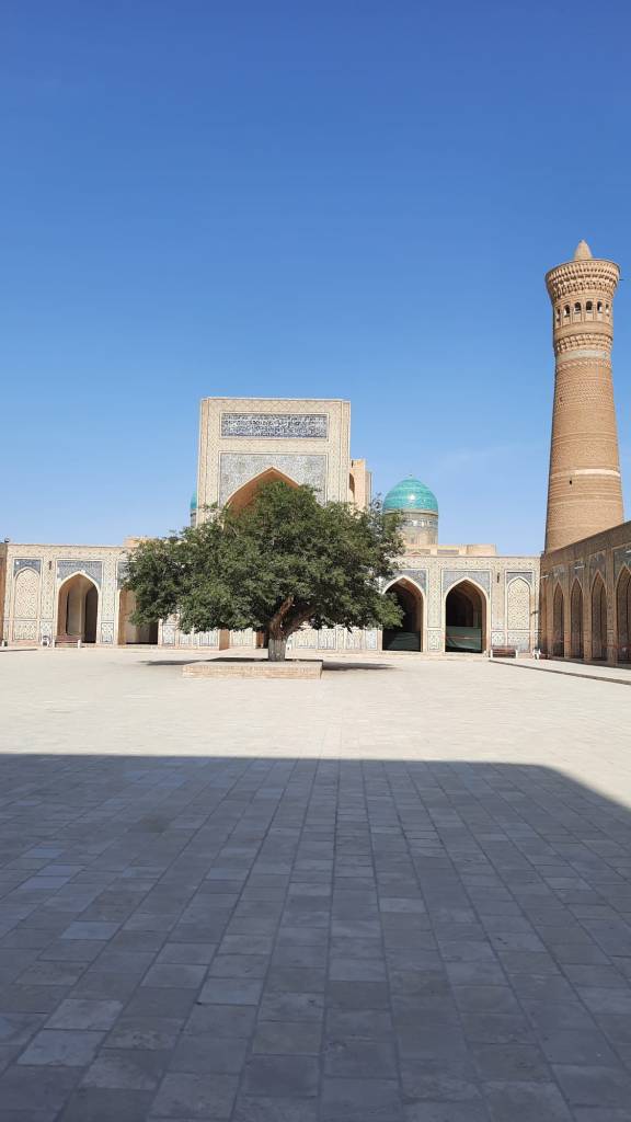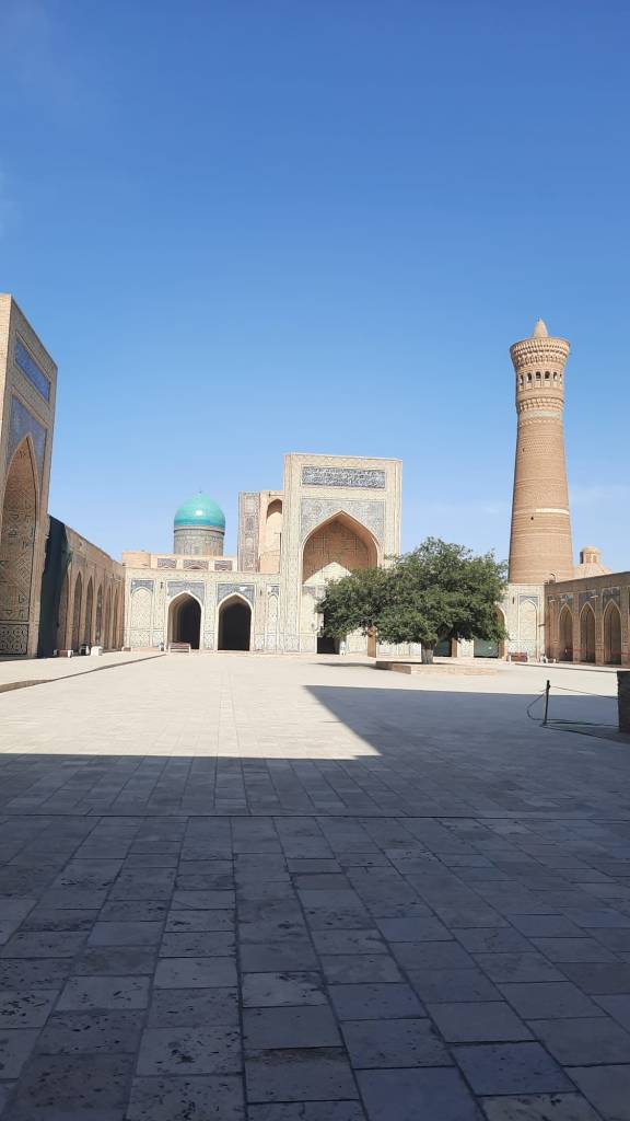 Non loin du centre de Boukhara vous pourrez traverser le bazar Toqi Telpak Furushon et arriver à l’ensemble Po-i Kalon une médersa et une mosquée qui forment un koch, c’est sans hésiter la plus belle place de la ville.