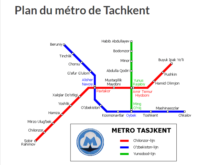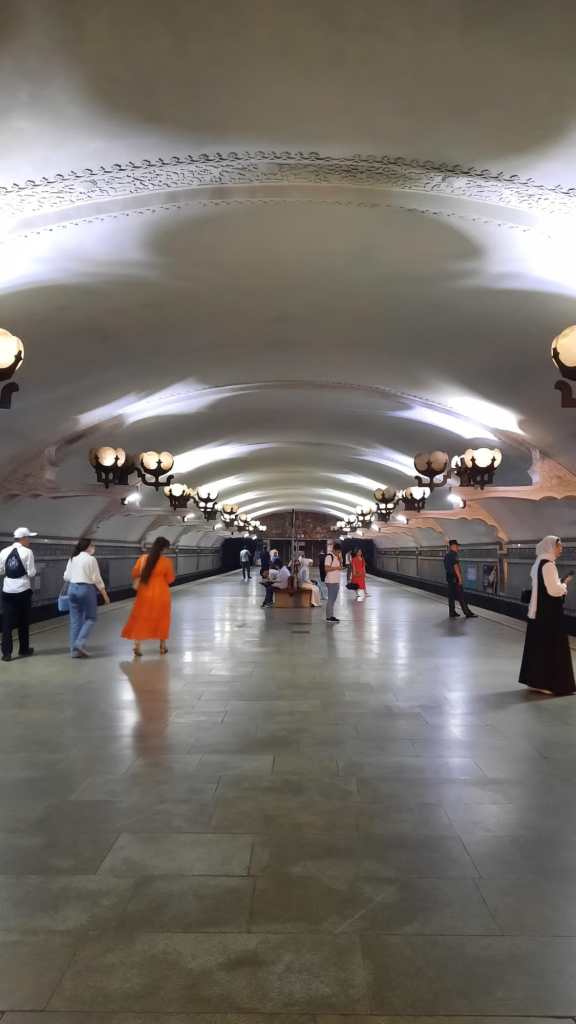 Après 2h de train express, nous arrivons à Tachkent pour la dernière étape du voyage. La fatigue commence à se faire sentir, heureusement notre hôtel est bien situé près de l’hôtel Ouzbékistan et de l’Opéra. A Tachkent, vous pourrez vous déplacer en métro, cela vous permettra de joindre l’utile à l’agréable étant donné qu’il possède de très jolies stations à l’instar du métro de Moscou, Saint-Pétersbourg ou Kiev.