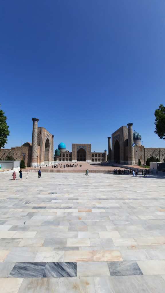 La place du Régistan est composée de 3 médersas construites à des époques différentes, elles forment un magnifique koch.