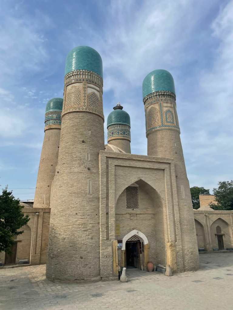 La médersa Tchor Minor se caractérise par 4 minarets symbolisant les 4 coins (directions) du monde. Il ne reste qu’une petite partie de l’ensemble médersa/mosquée construite en 1807 sur la décision du Calif Nyazkoul-bek, qui devait impérativement se trouver sur la Route de la Soie et signifier que toutes les parties du monde sont égales.