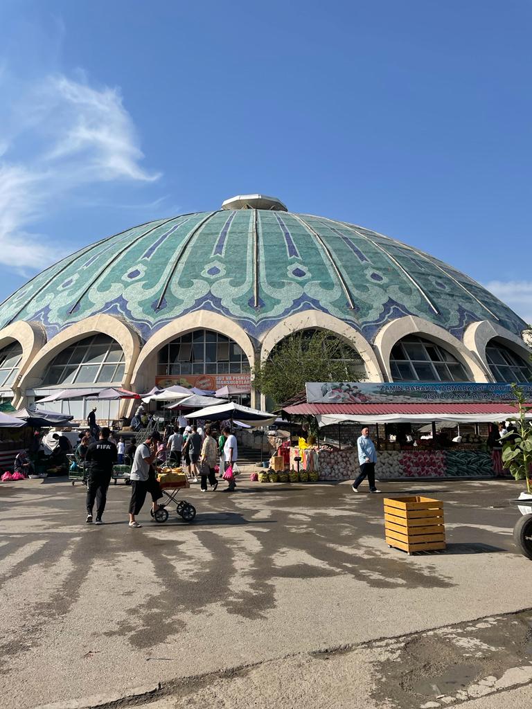 En prenant la O’zbekiston lijn (la ligne bleue) vous pourrez vous rendre au bazar de Chorsu (Chorsu Bozori) en place depuis plus de 2000 ans. Le bazar se situe sous un dôme et de nombreux commerçants se trouvent tout autour, en réalité il occupe tout un quartier. Le nom Chorsu vient du Perse et signifie « quatre chemins ». Tachkent fut une étape importante des routes de la soie et on venait des quatre coins du monde pour trouver tout type de marchandise.